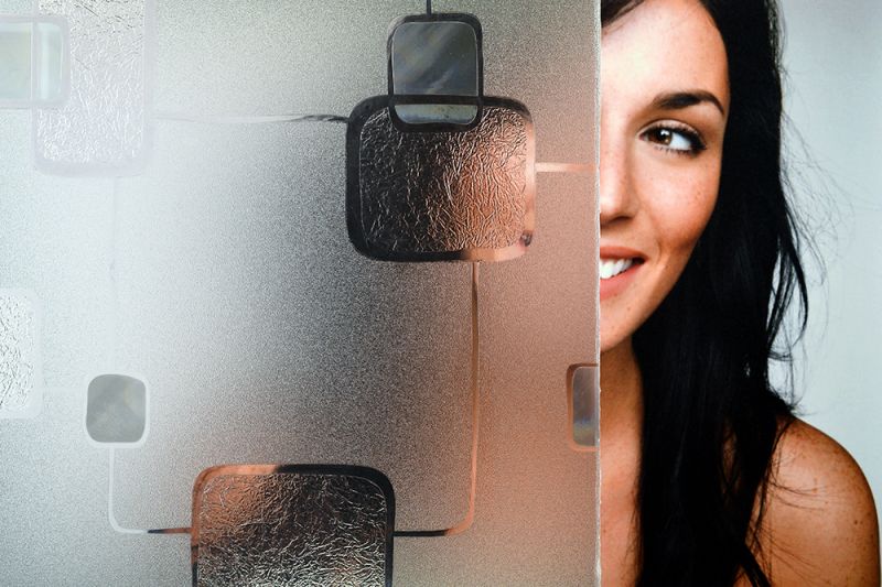 SX-SC561 Ambit is a non-adhesive static cling film with a unique geometric pattern of squares and rectangles with varying textures and dimensions. It is excellent for obscuring visibility while allowing significant light transmission. Order the length (quantity) needed x 35" wide.
