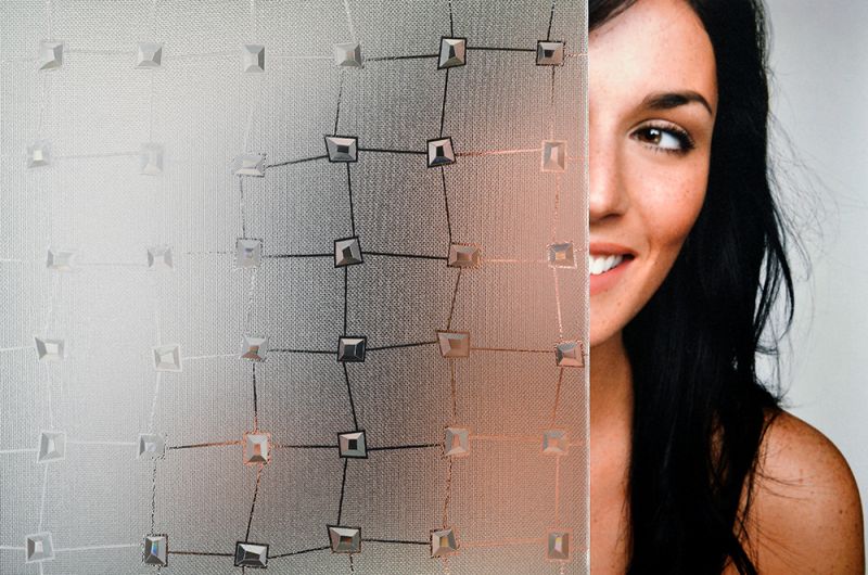 SX-SC571 Cut Glass Diamonds is non-adhesive static cling film with a beautiful cut glass pattern simulating baguette-cut diamonds embedded in frosted glass. Perfect for privacy applications. Priced per ft. Order the length (quantity) needed x 35" wide.
